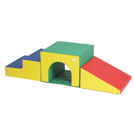 Young explorers can crawl around and pull themselves up on the colorful shapes or venture through the tunnel. As they grow and gain confidence, they will climb to the top to survey their world!
